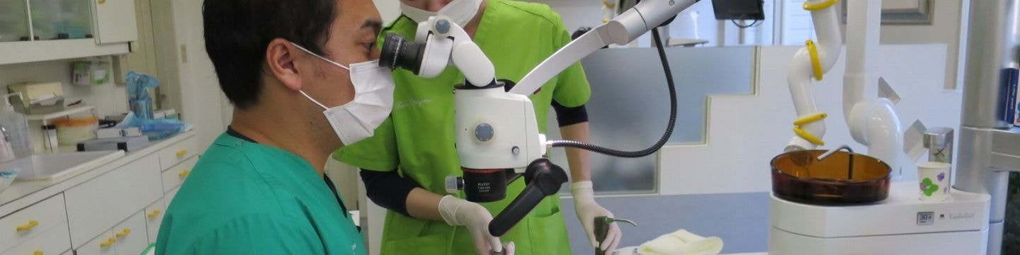 質の高い治療を行うのに無くてはならない診療機器です。特に根の治療には欠かせません。神経が入っている管は細くまた入り組んでおり、裸眼や少倍率の拡大鏡では正確にこの管を探す事は困難であり、その結果治療の成功率が従来の治療法では低いものとなっていました。しかし治療用顕微鏡を使用することにより90%近い成功率を可能にすることが出来ます。その他多くの領域で質の高い診断や治療にその威力を発揮しています。