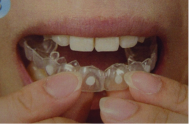 専用のトレーを作り、トレーに薬剤を入れて家庭で1日2時間装着して白くする方法です。白くなるのに時間はかかりますが、後戻りしづらい性質があります。
