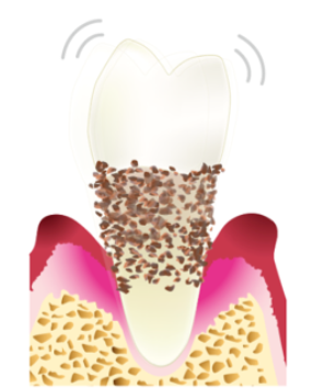 歯周病は重度にまで進行してしまうと、歯を支えている骨が大きく失われ、歯がグラグラになり食事をするのも大変になります。最悪の場合は歯を抜かなくてはいけません。
